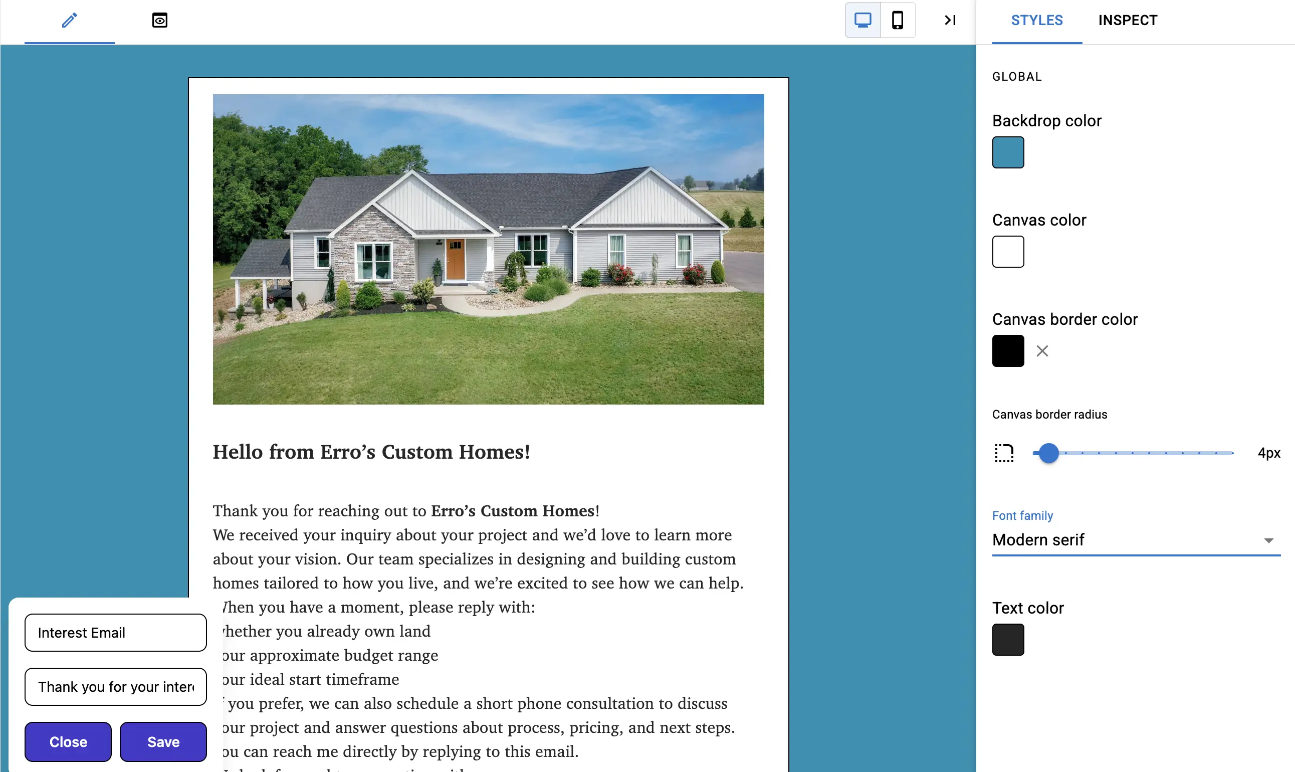 Create stunning, personalized email campaigns with an intuitive editor. Add images, branding elements, custom layouts, attachments, and more—no design experience required.